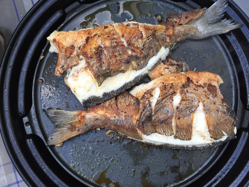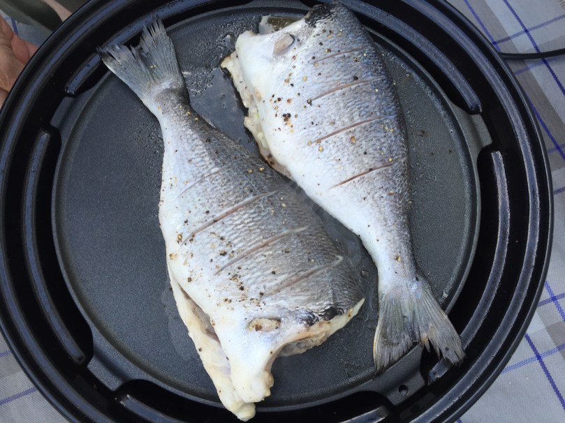 Wir probierten es ebenfalls und mittels internationaler Zeichensprache im „Mercadona“-Supermarkt kamen wir in den Besitz von perfekt ausgenommenen und abgeschuppten, kopflosen frischen Doraden.