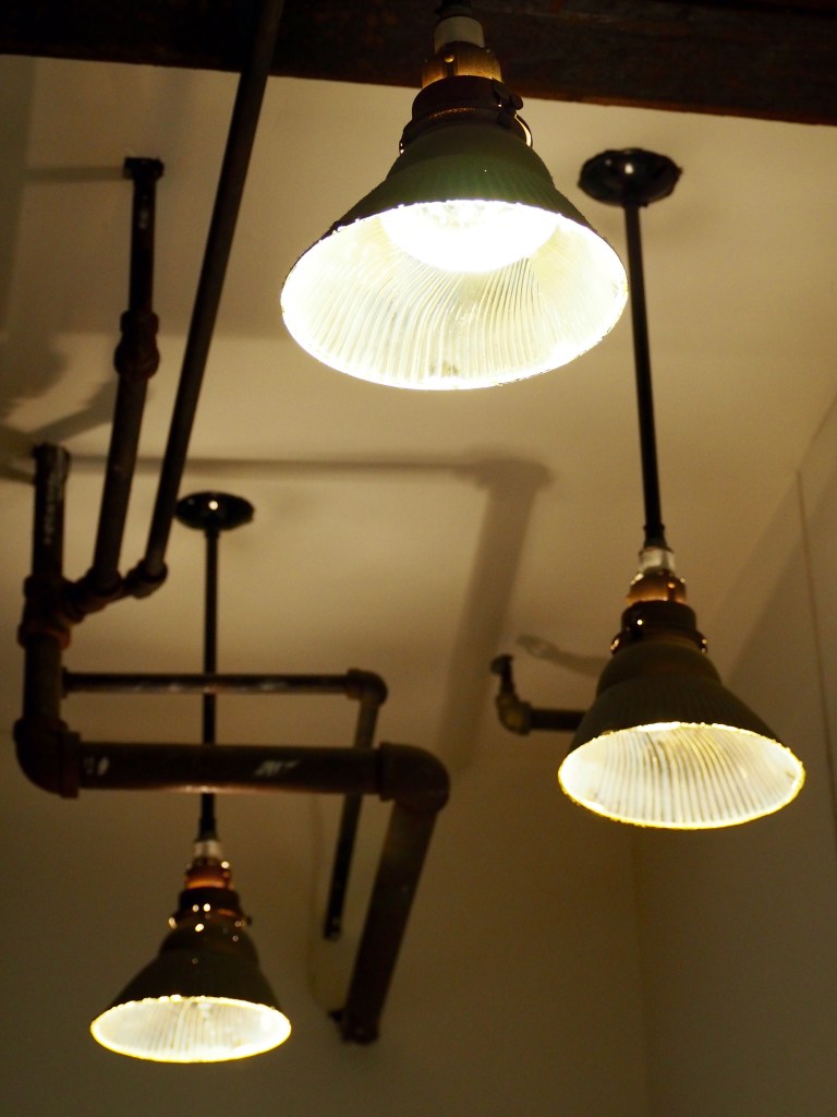 Kleine runde Tische in postindustriellem Ambiente bieten eine außergewöhnliche Atmosphäre.
