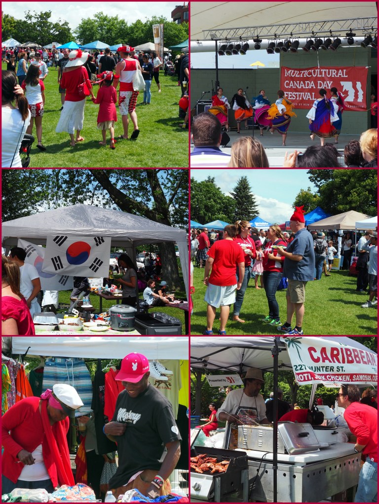 Rot und weiß, die Nationalfarben der kanadischen Flagge ist die vorherrschende Farbkombination von Kleidung, Gesichtsschminke und Kostümen. Dazu finden wir Stände mit Essensangeboten aus den unterschiedlichsten Kulturen und Ländern dieser Erde, Tänze der verschiedenen Volksgruppen auf der Bühne und Zurschaustellung von in Fantasiekostümen gekleideter Erwachsener und Kinder…