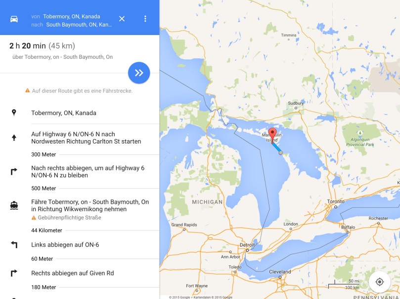 Geschichte soll uns noch eine Weile begleiten. Wir nehmen die Fährte des Großen Manitou auf: Manitoulin Island