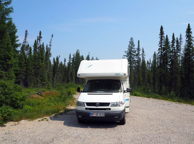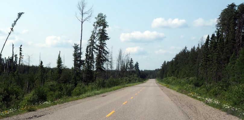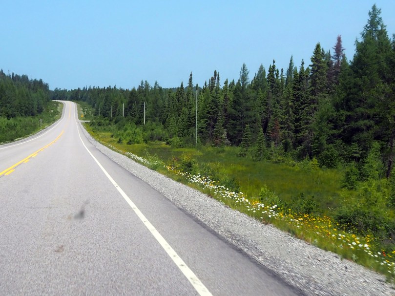 „Highway 107“ finde ich, beschreibt nicht wirklich, wie einsam es hier ist. Das Besondere sind die dort in der unendlich flirrenden Hitze zwischen den jungen Trieben zu findenden Elchspuren.