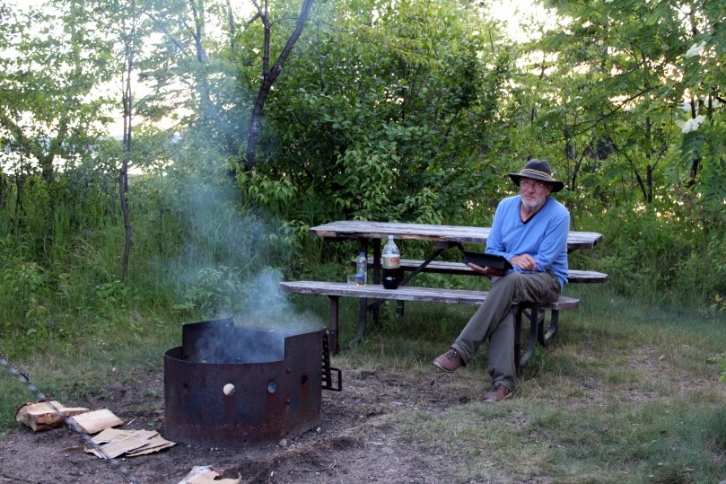 Inzwischen ist es 10:00 pm, also bei euch in Deutschland 3 Uhr morgens, die Sonne ist vor einer halben Stunde untergegangen und das Campfire mit seinem Rauch hält die Mücken und die Black flies fern.