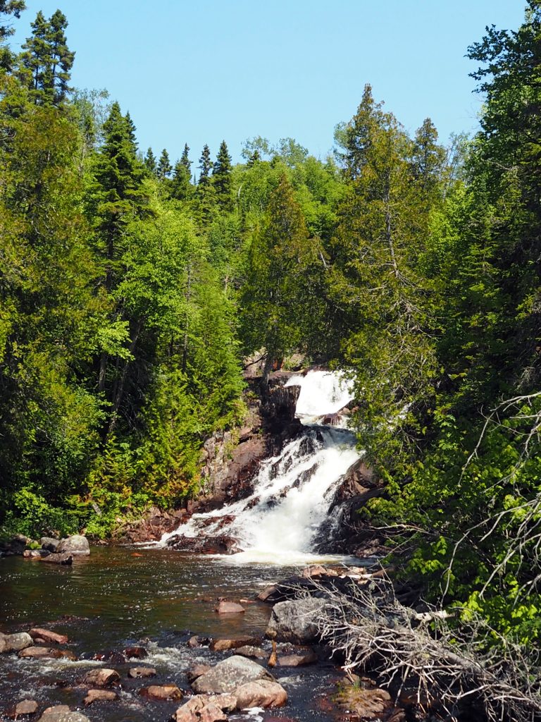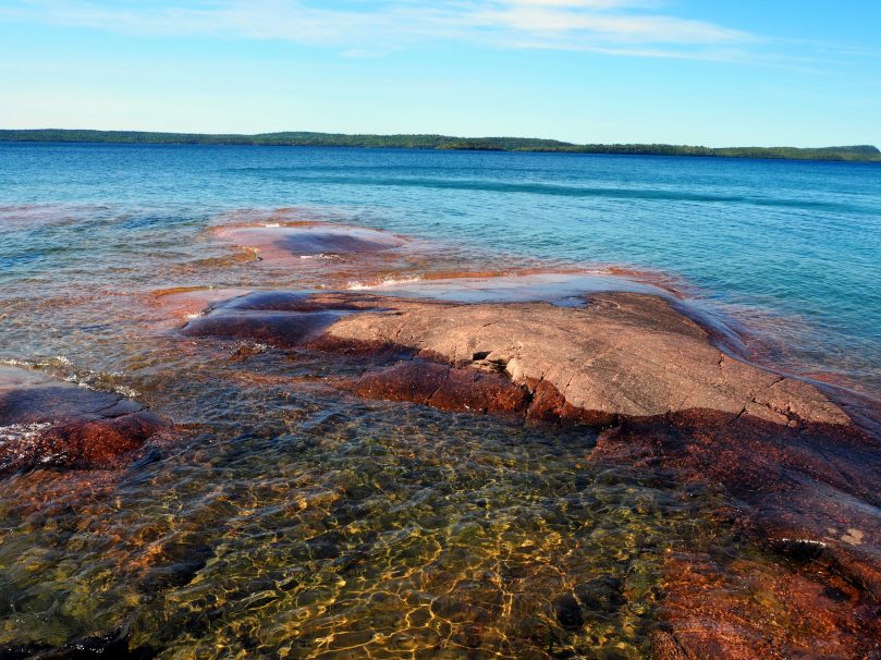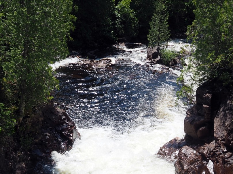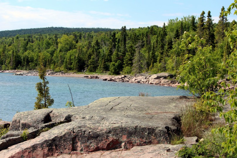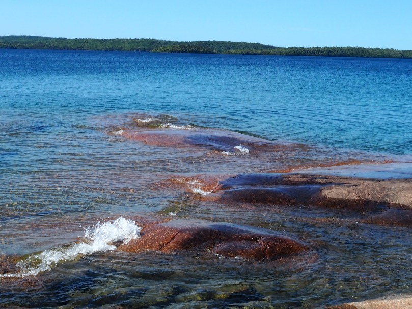 direkt dort, wo der Übergang zwischen dem Wasser des riesigen und als saukalt getesteten Lake Superior (mal wieder ein Super, weil wohl der größte Süßwassersee der Erde) und den glattgeschmirgelten Felsen dafür sorgt, dass es regelmäßig „gurgelt“.
