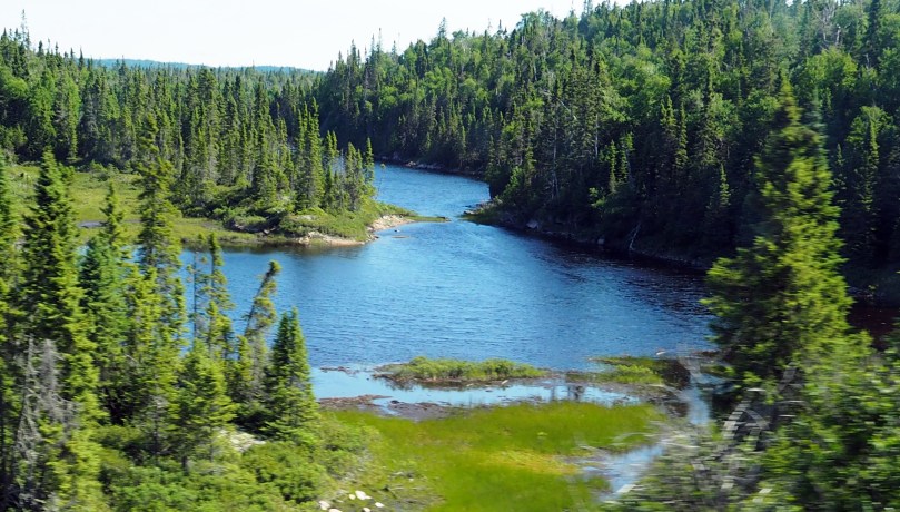 Wir sind froh, dass am nächsten Morgen wieder die Sonne scheint und uns die typische Farbkombination der kanadischen Wildlandschaft, satte Grüntöne der Wälder, intensives Blau des fast wolkenlosen Himmels,