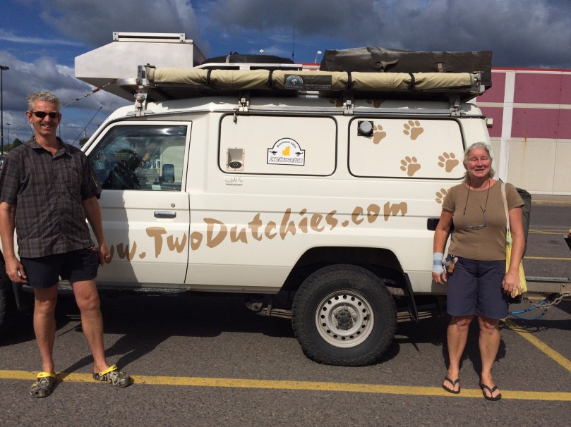 Neben dem Toyota stehend, gibt es ein erstes „Hello“ mit den holländischen Insassen, einem seit fünf Jahren durch die Welt reisenden Paar, nach vier Jahren Australien, jetzt über die USA in Canada unterwegs.