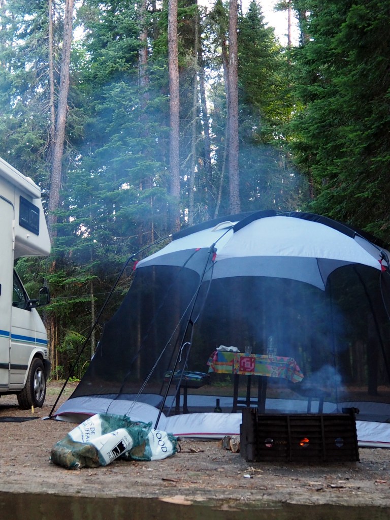 herrlicher Platz direkt am See, völlig abgelegen, allein, kein Nachbar zu sehen, mitten im Wald, fantastisch zum Baden, ideal für’s abendliche Campfire, ein gutes Glas Wein…