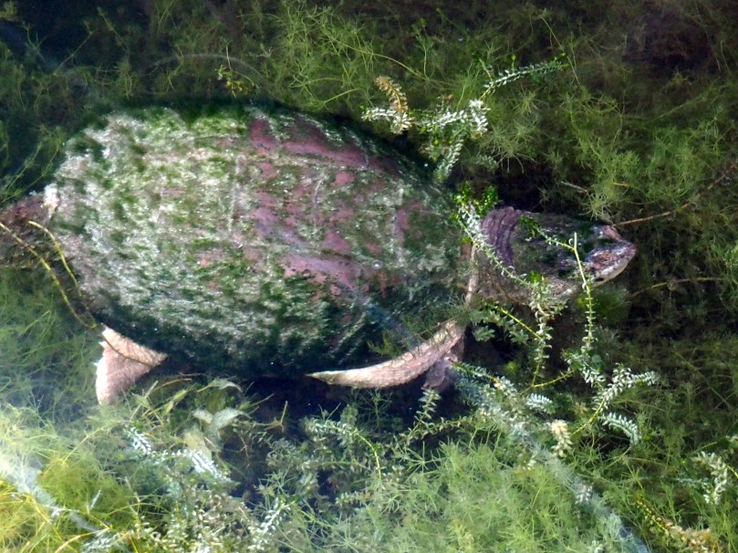 Es kommt unser Nachbar auf dem Campground, und erzählt mir, dass er finnische Vorfahren habe und er mit seiner Familie im Sommer auf dem Campground lebe, kurze Zeit später und fordert uns auf, zu einer Stelle am See mitzukommen, wo er gerade eine riesige Wasserschildkröte entdeckt hat, und er müsse sie uns unbedingt zeigen…