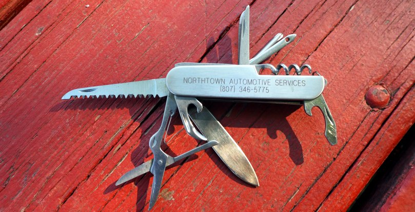 Zum Schluss der Unterhaltung schenkt er mir sein Taschenmesser.