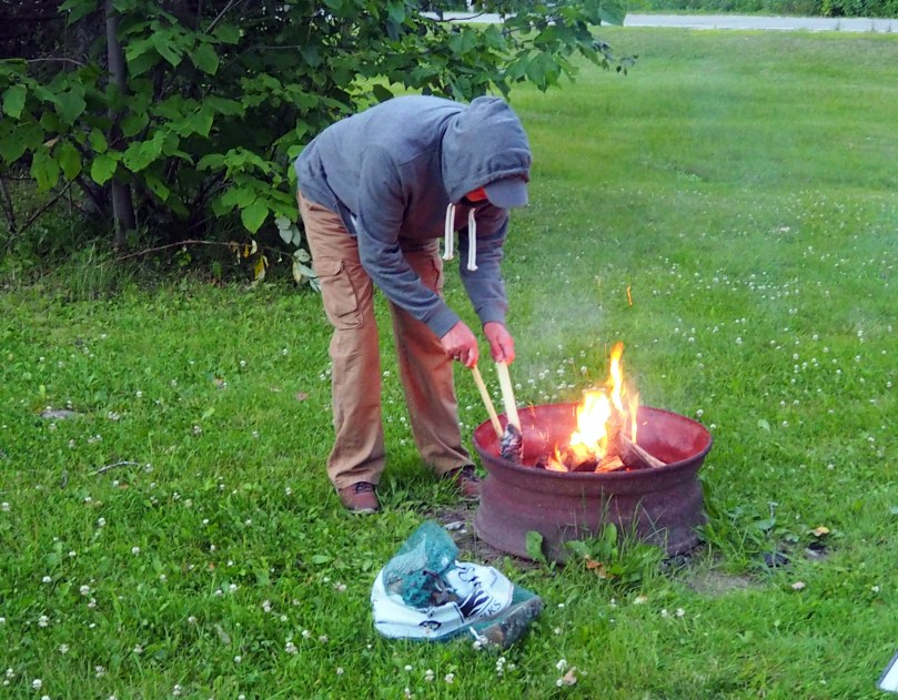 Wir landen auf einer größeren baumumrandeten Rasenfläche mit firepit und unser bestelltes Holz liegt schon bereit.