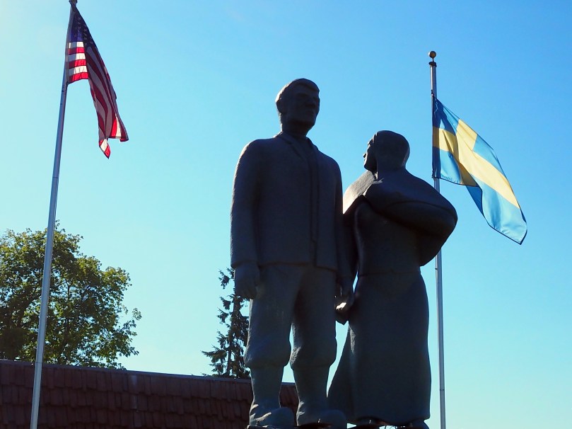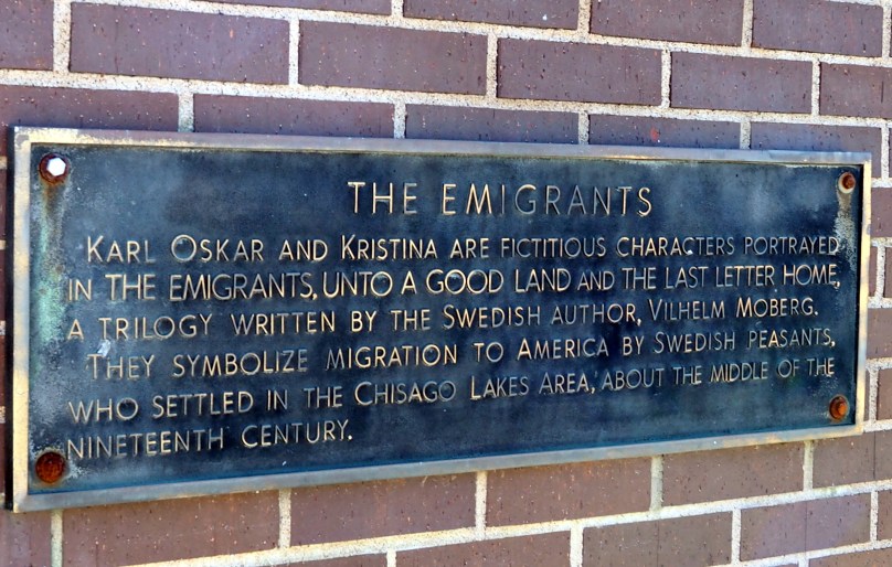 Genau, Karl Oskar und Kristina Nielsson, die „Auswanderer“ aus Vilhelm Mobergs vier Romanen über schwedische Familien, die um 1845 herum in Lindstrom, Chisago County, Minnesota eine neue Heimat fanden, haben hier ein Denkmal erhalten…