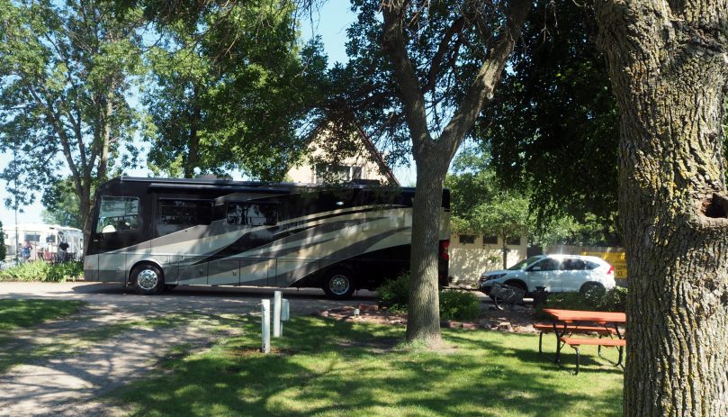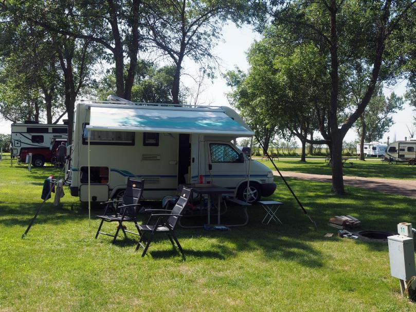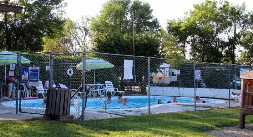 Dort liegt ein gemütlicher, schattiger, privater Campground, den wir insbesondere wegen seines schönen Pools sehr mögen.