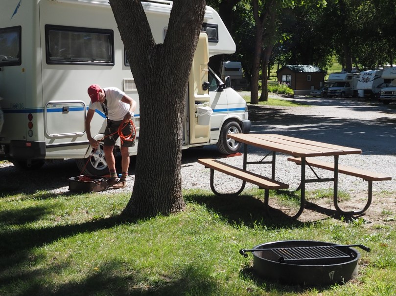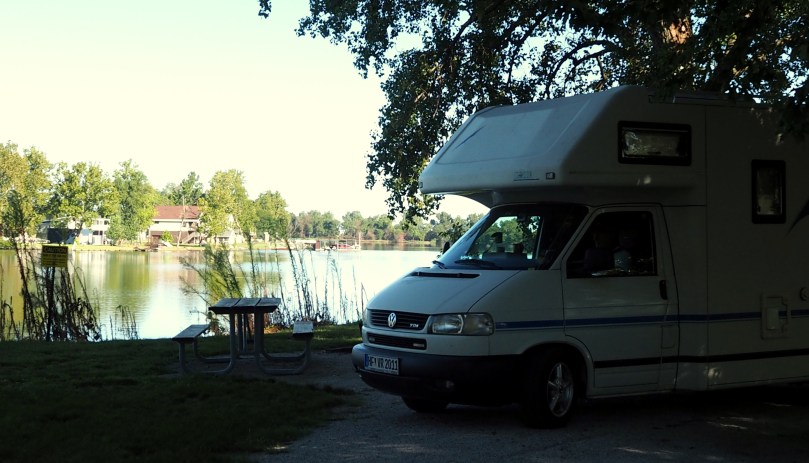 Aber erst schlafen wir Samstagabend auf dem wochendgefüllten „Camp a way“ Campground in Lincoln, der Hauptstadt Nebraskas, zwischen zwei sich hier kreuzenden Highways gelegen, auf der kleinsten Site des ganzen Platzes, egal, wir passen prima drauf.