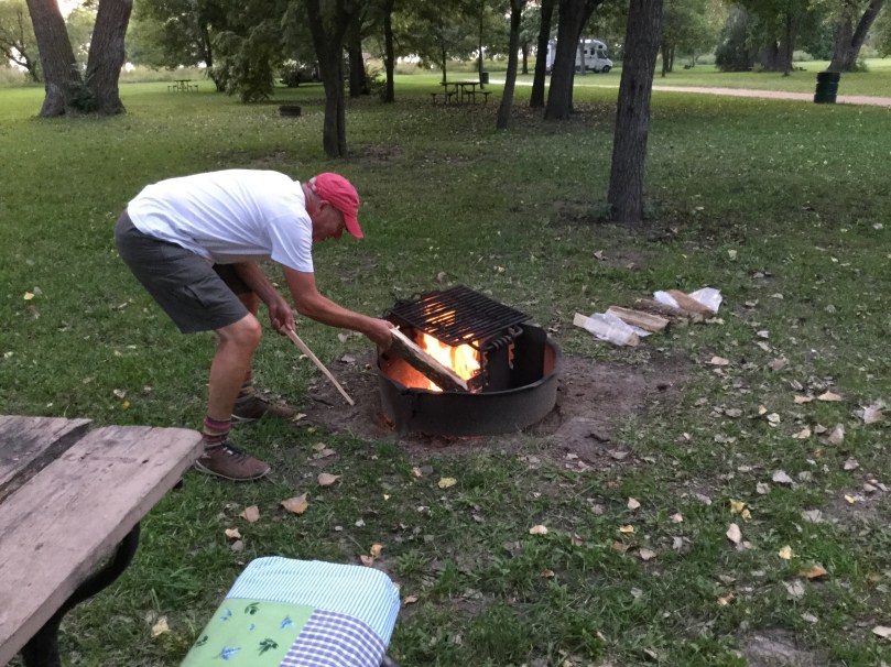 Vorbei an vielen großen Bahn-Verladeställen für Rinder reicht es uns nach knapp 200 Kilometern mit Baustellen und sich nicht öffnenden Bahnschranken, so dass Vero mir den „Johnson Lake Statepark“ als Übernachtungsplatz anbietet, den wir nur 10 km südlich des Hwy’s finden.