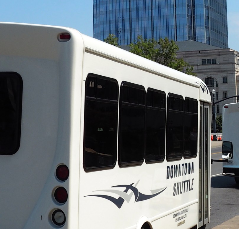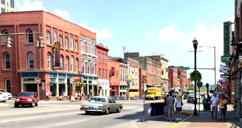 Der Shuttle-Bus, den wir telefonisch bestellt haben, er fährt stündlich zur vollen Stunde, bringt uns nachmittags um 17 Uhr von unserem Campground „Two River Campground“ nach Nashville, Downtown.