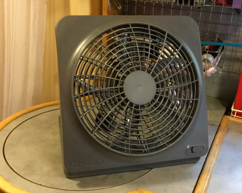 Nach einem sehr netten Gespräch stand ich mit dem notwendigen Kabel und dem Dreifachstecker „Zuhause“ vor dem sich drehenden, frische Luft wirbelnden Ventilator.
