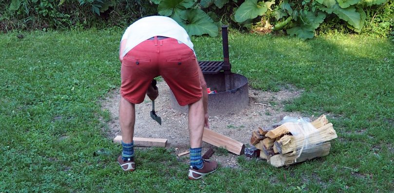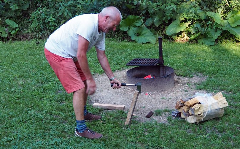 Besonders gut geht es, wenn ich etwas Anzündeholz zur Verfügung habe, dass ich mir mit der Axt „hart“ erarbeiten muss.