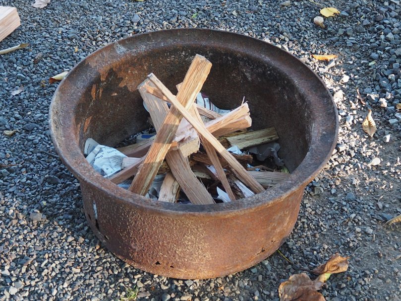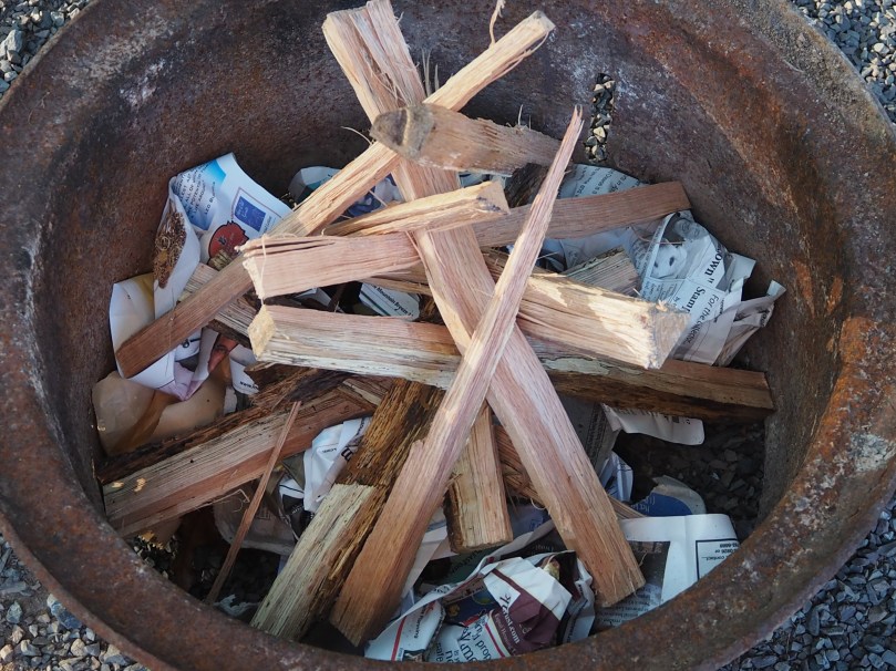 Egal wie, wenn dieser Stapel gut brennt, dann kommt das eigentliche Firewood locker oben drüber und es brennt „wie Zunder“.