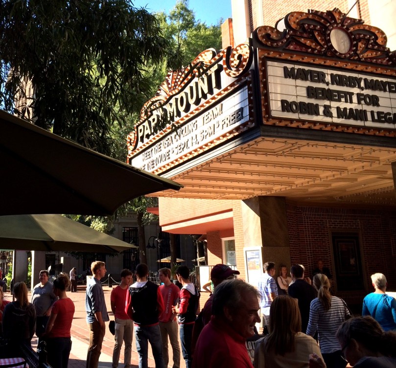 So treffen wir uns zum gemeinsamen Stadtbummel und zufällig auf das öffentliche Treffen der US-amerikanischen Nationalen Radrennequipe vor einem Kino