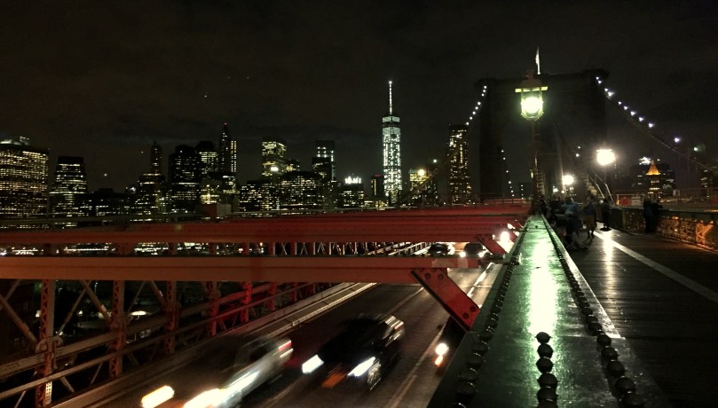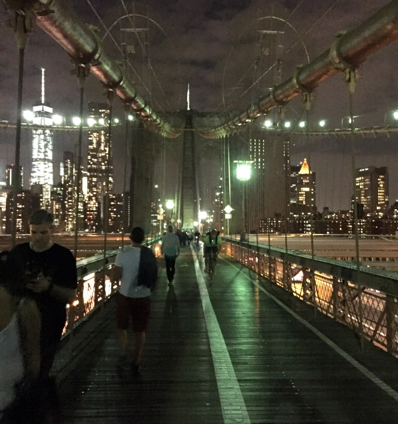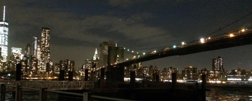 Die Subway Linie A Richtung Manhattan spuckt uns an der letzten Station in Brooklyn, High St. an die inzwischen völlig dunkle, aber von vielen Menschen benutzte Erdoberfläche. Die Lichter der östlichen Manhattan Skyline inklusive rot leuchtendem Watchtower sind ein Zeichen dafür , dass wir an der Stelle angekommen sind, wo wir uns trennen müssen: