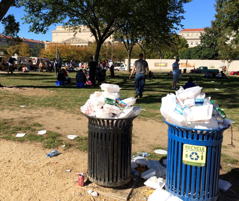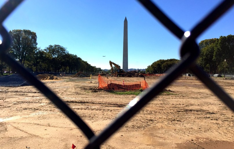 und wirkt wie eine graue Restmülltonne, die National Mall, eine meilenlange ausgedehnte, elegante, zu großen Teilen eine einzige rostrote eingezäunte nackte Baustelle.