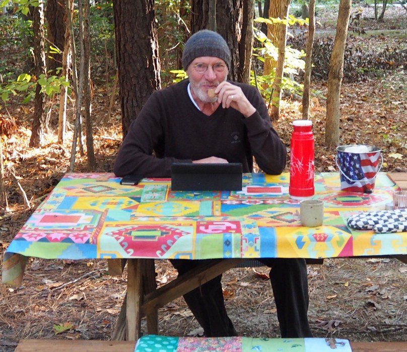 Quiltzubehör und Boulekugeln ausgepackt und „practice“ ist angesagt. Feuerholz erlaubterweise gesammelt,