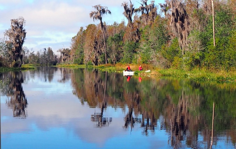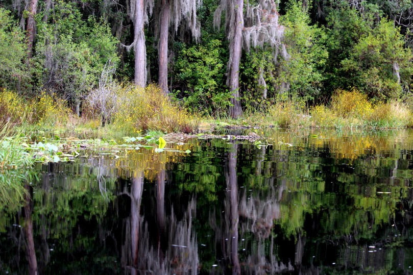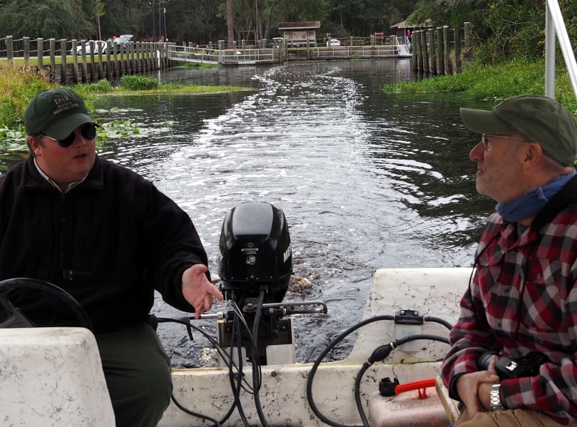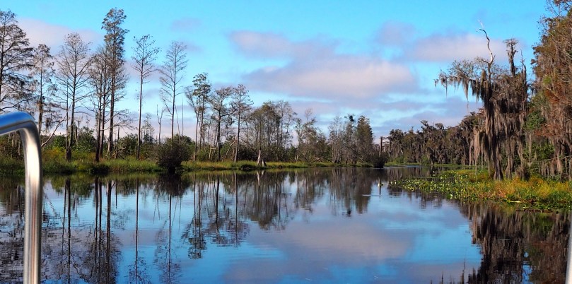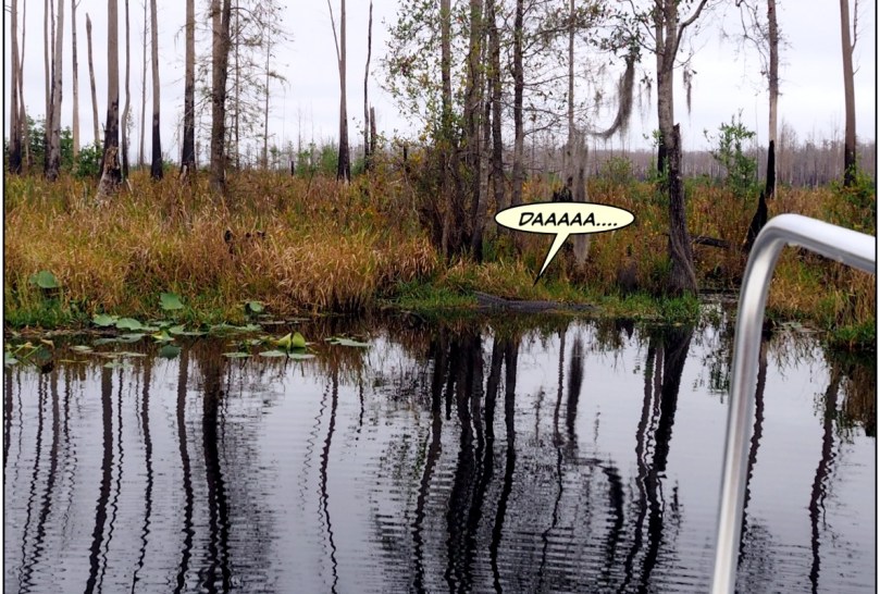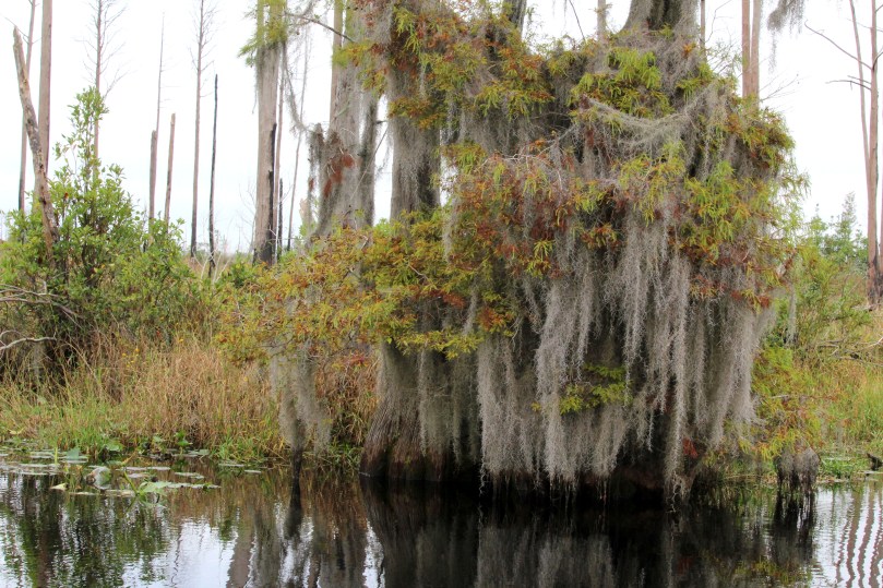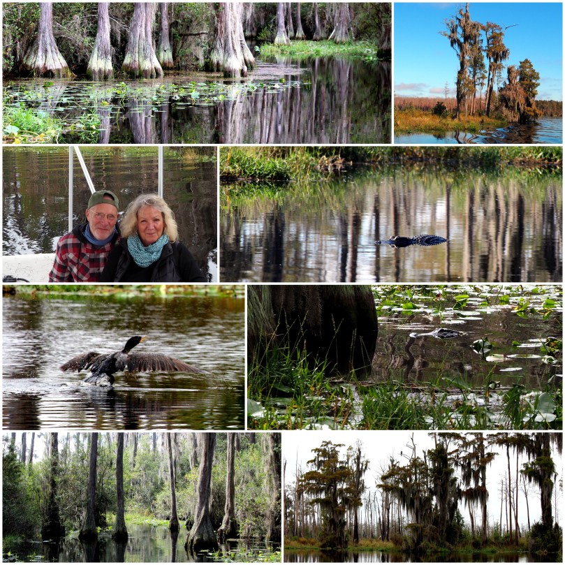Im Moment warten wir noch mit „deutscher Pünktlichkeit“ auf den Guide, der uns für eine Bootstour durch die unheimlich anmutenden Geheimnisse der Gewässer des Stateparks zur Verfügung stehen soll.