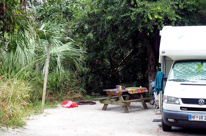 Anastasia Statepark in der Nähe von St. Augustin ist einer dieser „schönsten“ US-Stateparks mit Campground in Radfahrentfernung (1 km) zum Atlantik, den wir, wegen seiner Attraktivität ist er häufig ausgebucht, vorzeitig reserviert haben. Für die Reiseplanung ist das eine Einschränkung, aber für den Wunsch nach Sicherheit ist es sehr angenehm.