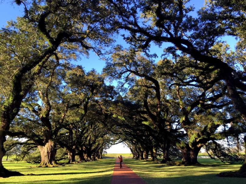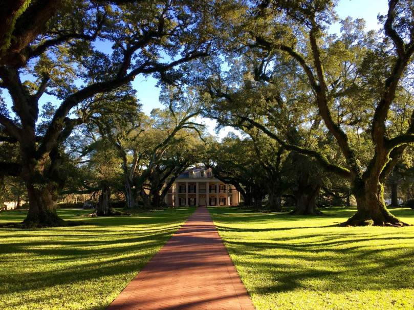 zur an die unmenschliche Sklavenarbeit erinnernden „Oak Alley Plantation“ mit für die Besitzer fantastischer Szenerie.