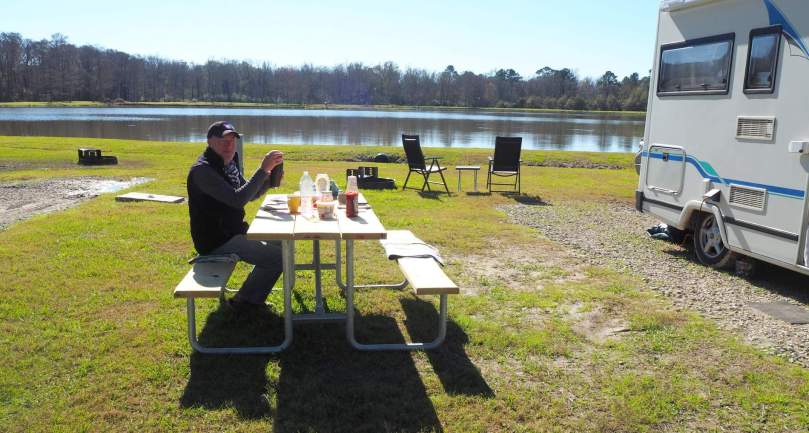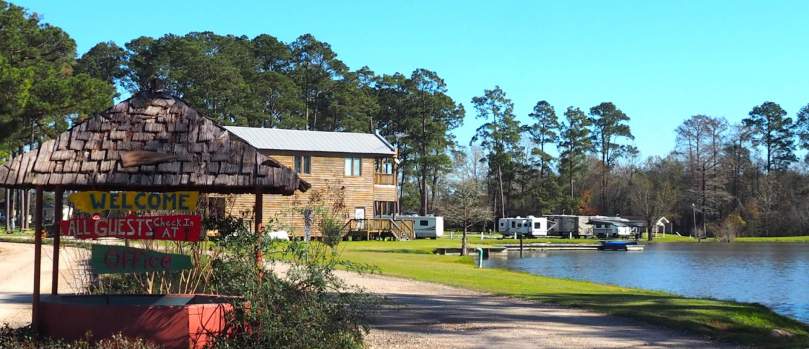 Aber unser Ziel für heute, der „Lake View RV & Campground“ in der Nähe von Eunice, ist einfach genial. Alles passt: