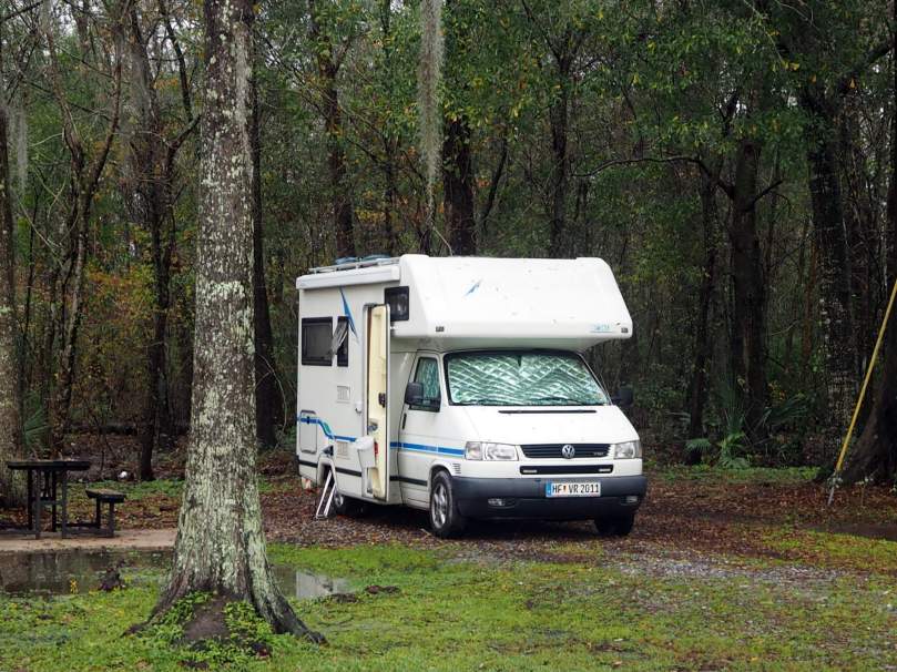 Absoluter Tiefpreis von $14,95 inklusive Wifi und ruhiger Platz bei feuchtkaltem Wetter lassen uns verweilen.