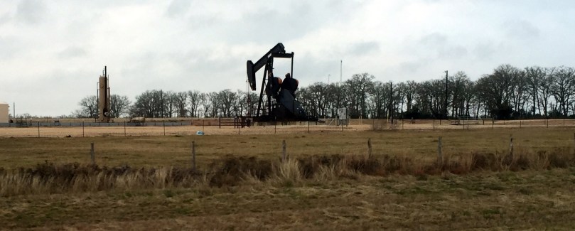 und an den auf dem Land herumstehenden Ölpumpen vorbei.