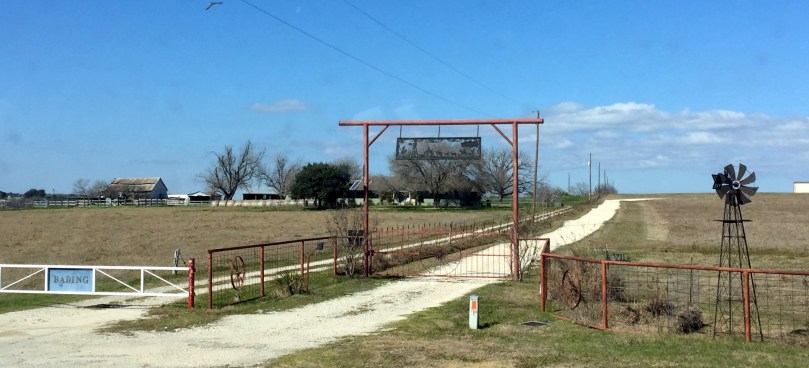 Wir fahren an den Eingangstoren der ersten texanischen Ranches