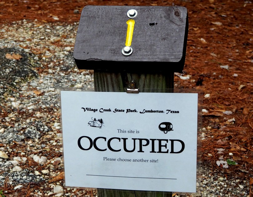So, staunend und nach der Fahrt durch die östlichen und südöstlichen Staaten der USA, uns eher darüber wundernd, dass hier auf dem Land, irgendwie das 21. Jahrhundert wohl noch nicht so richtig angekommen zu sein scheint, alles sieht mehr oder weniger nach „so war’s immer und so bleibt’s auch“ aus, erreichen wir den texanischen State Park hinter der Grenze zwischen Louisiana und Texas, „Village Creek State Park“, Lumberton TX.