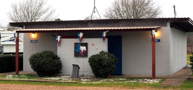 Wir müssen es auch nicht wirklich verstehen, wieso das eher selbstgebastelt erscheinende Bathhouse eindrucksvoll die stolze Haltung der Texaner zu ihrem Staat durch die ausschließliche Verwendung der texanischen Farben und dem „Lone Star“ dokumentiert.