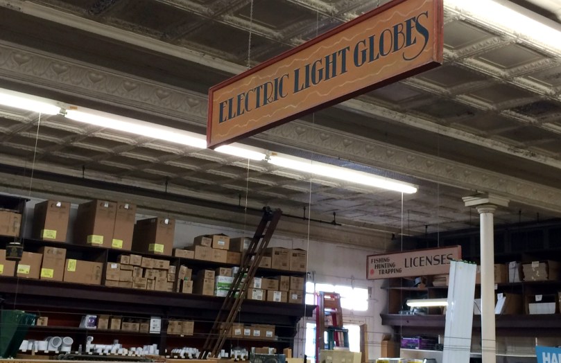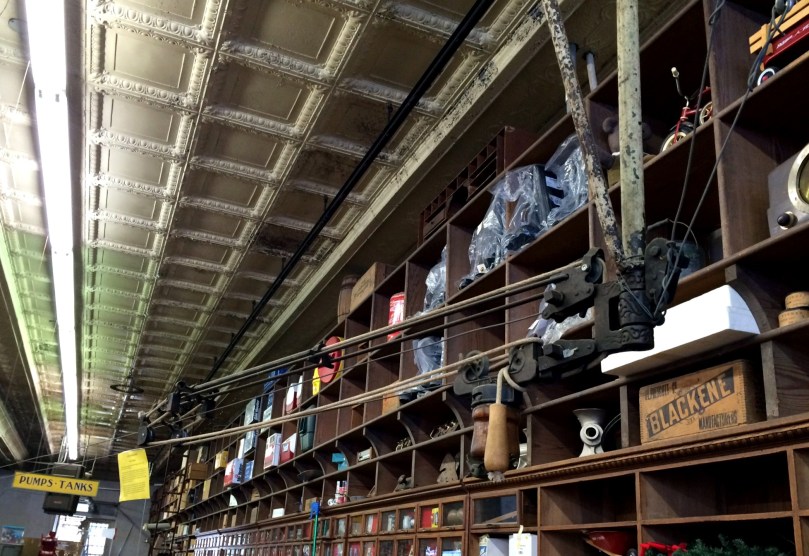 – Und zweitens, das Geld nahm früher in diesem Laden einen besonderen Weg. Es wurde über ein Drahtseilsystem mit der Rechnung in das Buchhaltungsbüro am hinteren Ende des Ladens befördert.