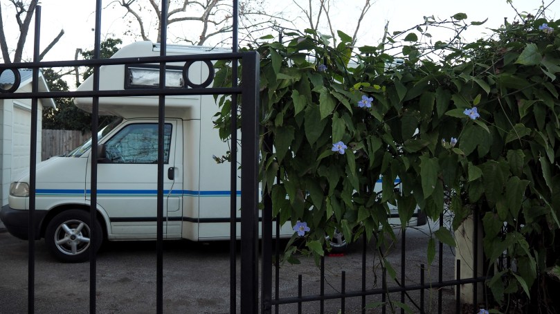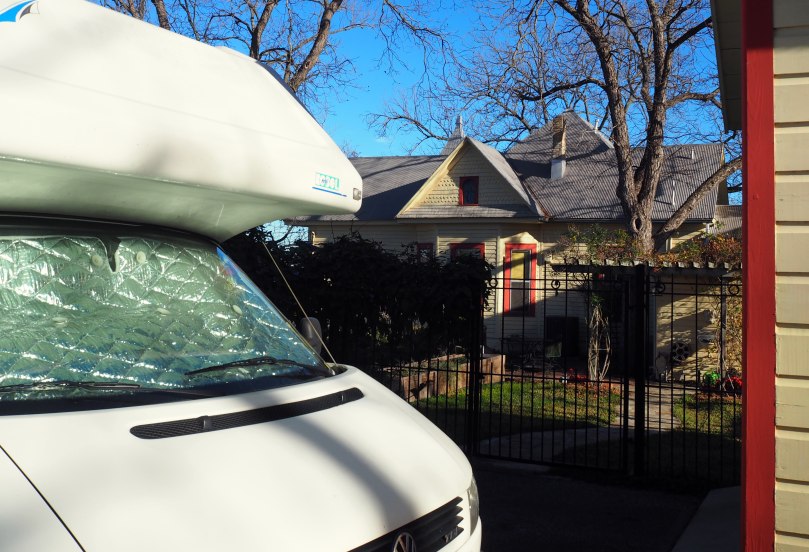 Das WoMo steht, inzwischen wohl versorgt mit Strom und „in die Waage gebracht“, vor der zweiten Garageneinfahrt, so dass wir auch abends nicht mehr weg müssen.