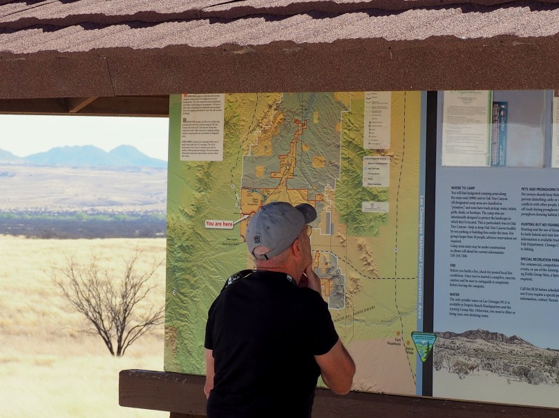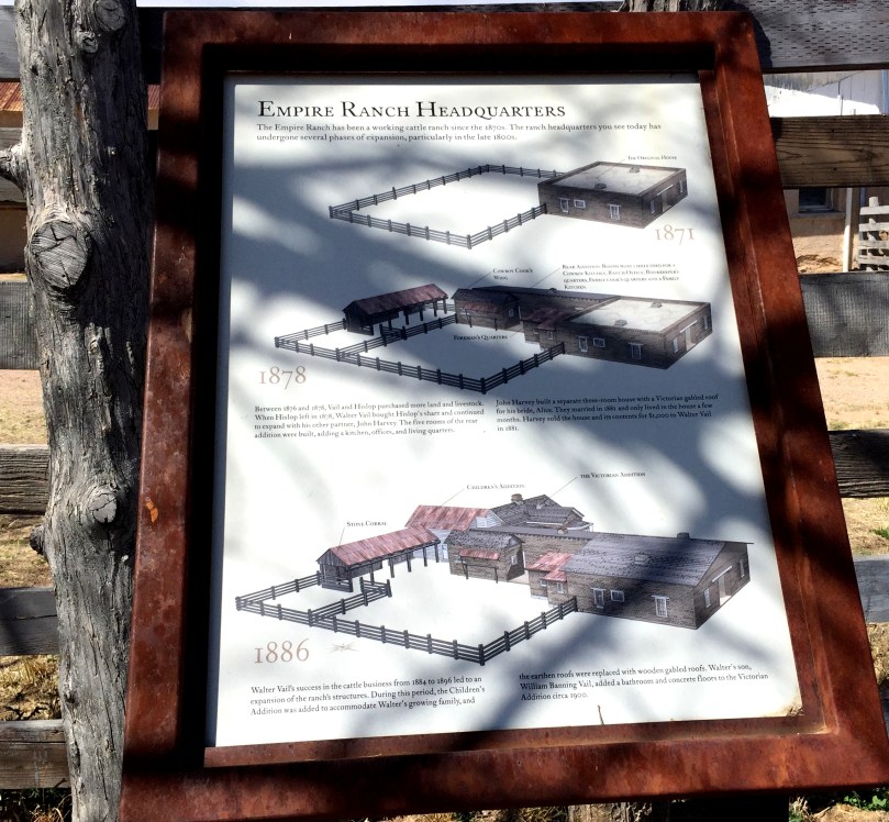 Die schmale, kurvenreiche Straße verläuft kilometerweit so dermaßen ohne erkennbares Ziel, dass wir froh sind, irgendwann eine große Informationstafel zu erkennen, aus der wir entnehmen können, wir befinden uns auf dem Weideland der „Empire-Ranch“.