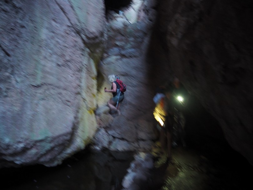 danach herrscht totale Finsternis, gepaart mit dem in der Dunkelheit besonders lauten Rauschen des parallel im Inneren der Höhle fließenden Baches…