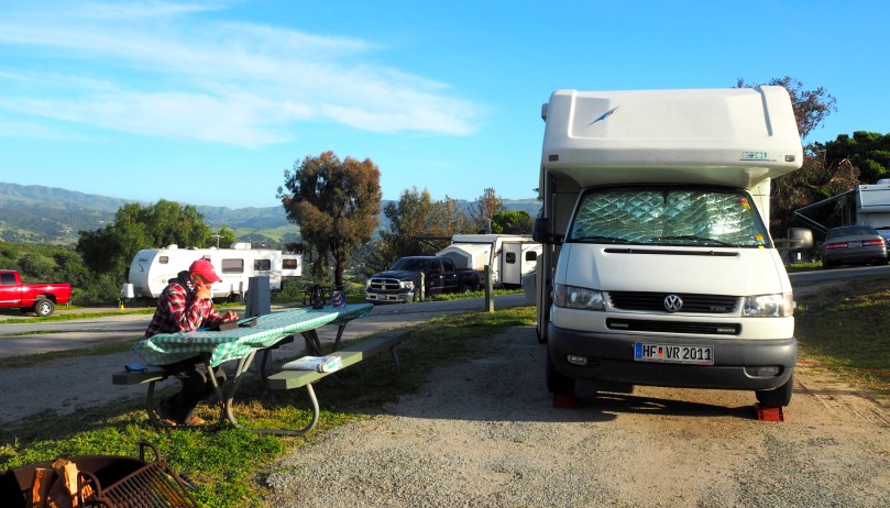 …und landen im „hohen“ Bogen, auf die Stadt Salinas zufahrend, kurz dahinter, auf dem Laguna Seca Recreation Resort RV Park.
