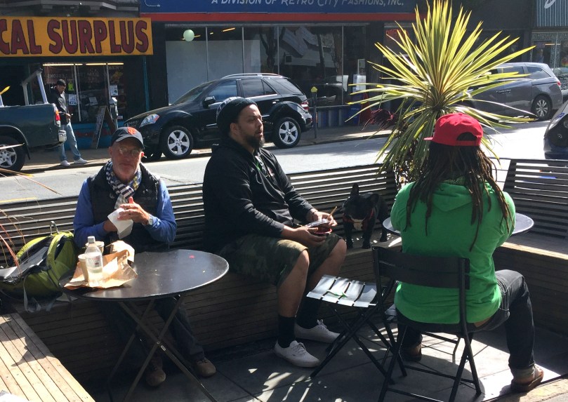 …Um sie dann, im Preis inbegriffen, auf der Straßensitzgelegenheit zu verspeisen und „Sehen und Gesehen zu werden“!