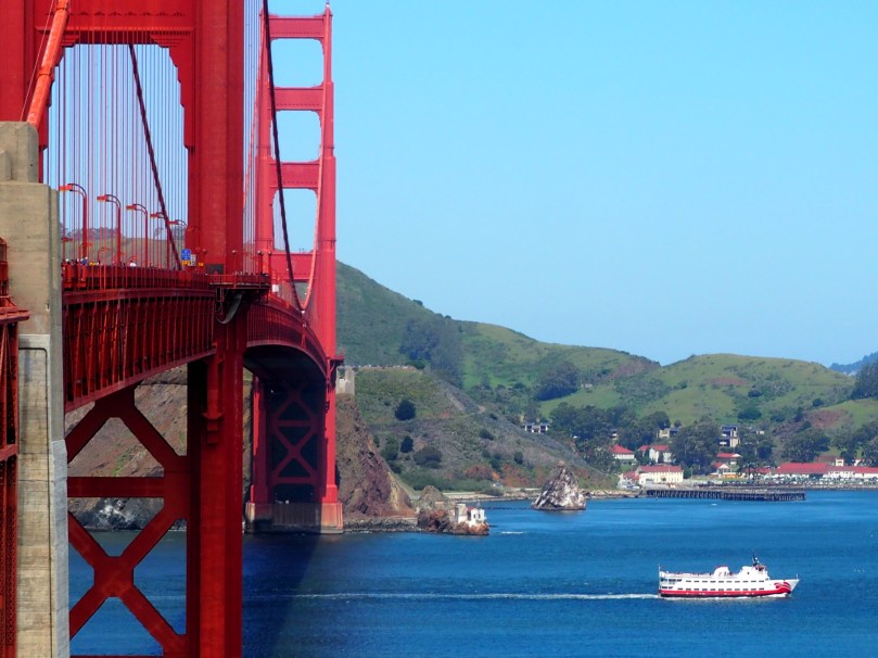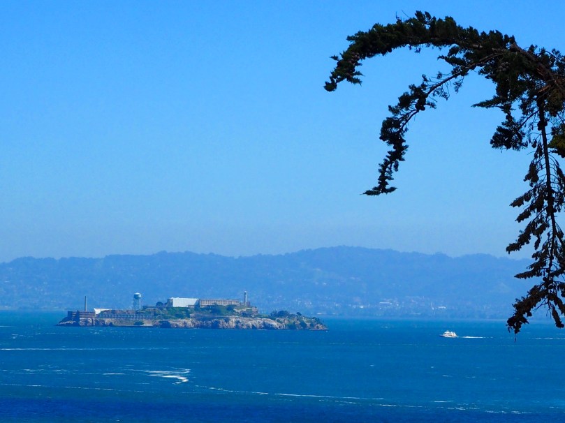 Auf der der Brücke abgewandten, hinter uns liegenden Seite, San Francisco mit Alcatraz…
