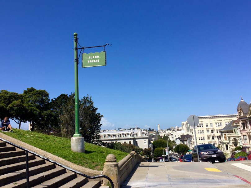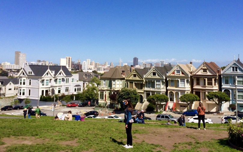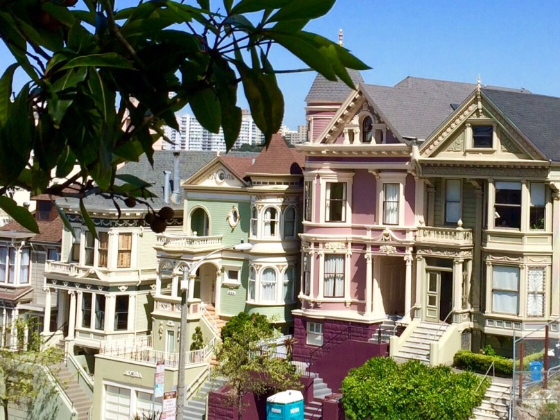 Die aus dem unverwüstlichen Holz der Mammutbäume gebauten berühmten „Painted Sisters“ am Alamo Square.