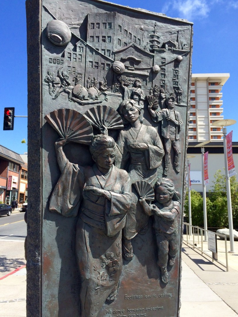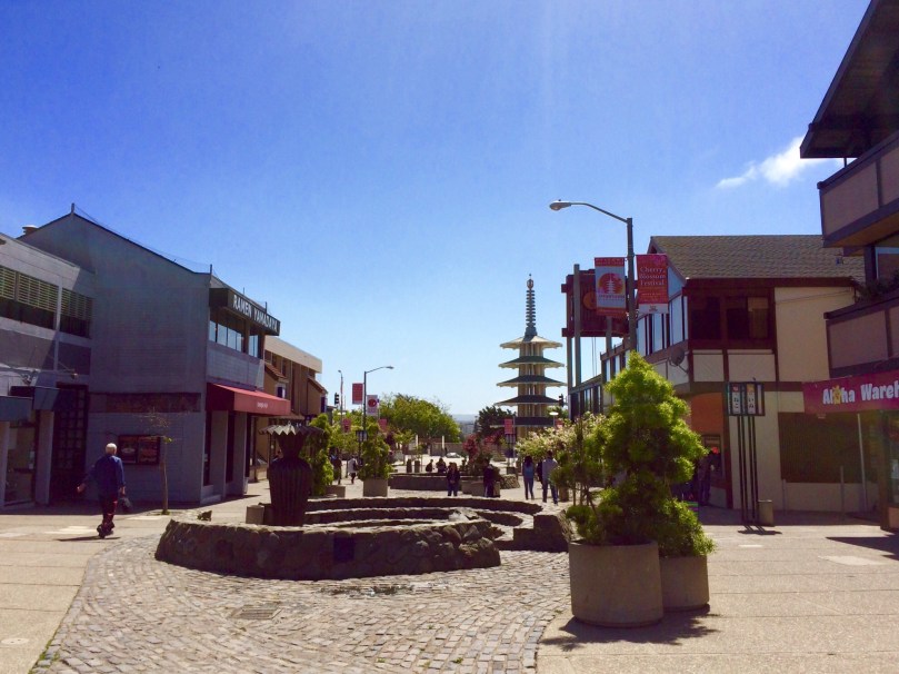 Japan Town, im Verhältnis zu China Town völlig zurückgenommen, über mehrere Blocks ausgedehnt, fast eigene Stadt zu nennen, unsere erste Japanerfahrung oder so etwas ähnliches,