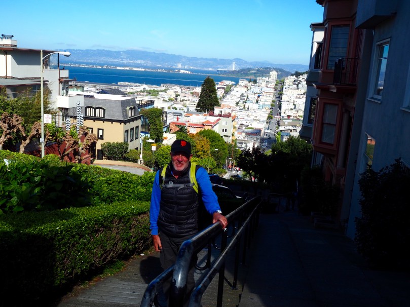 Wer San Francisco kennt, der weiß, wir mussten wieder mit O-Bus und Bus zurück, um die kurvenreichste Straße der Stadt, Lombard St. zu sehen. Wahnsinnig, ich glaube, wir sind heute mindestens 10 mal umgestiegen, von Linie zu Linie, von Tram auf Bus auf O-Bus…