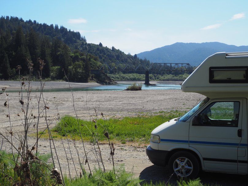 und suchen uns am Ufer des Eel River einen netten Frühstücksplatz.