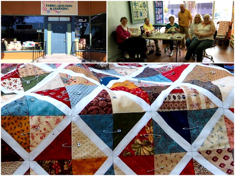 Im hiesigen Quiltshop dürfen wir während der „free Lesson time“ unter fachlicher Aufsicht der örtlichen Quiltgruppe meinen Bett-Quilt bügeln und zusammenlegen.