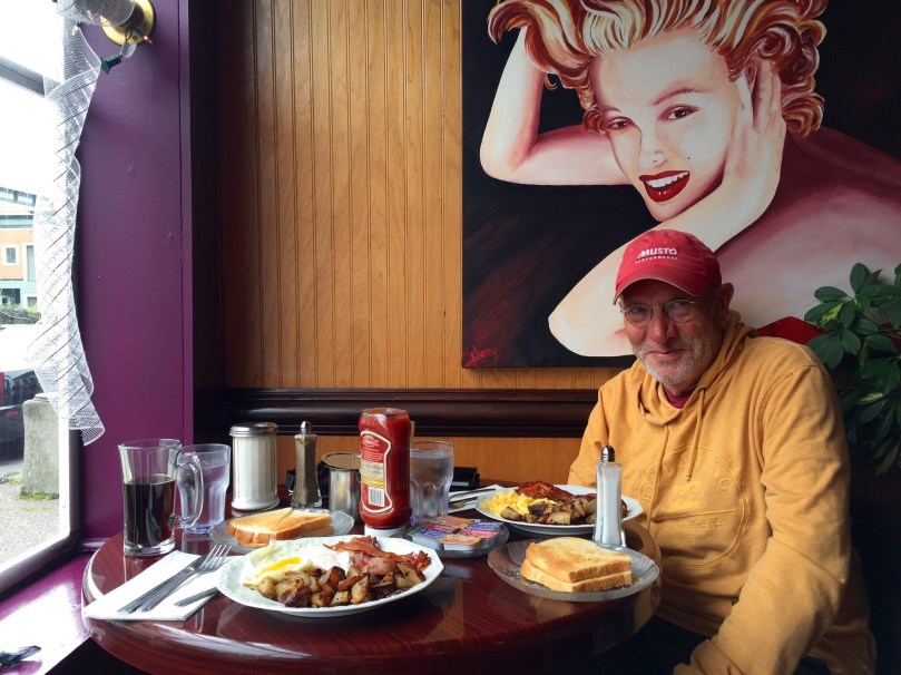 Wir lassen die Leute arbeiten und gehen erst mal um die Ecke, Frühstück einpfeifen…