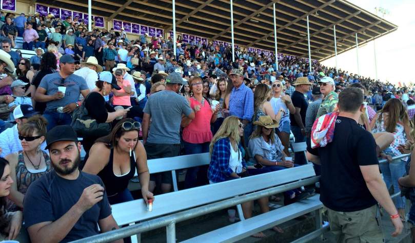 Irgendwie cool rausgeputzt das fachkundig wirkende Publikum. Die rund um das Rodeogelände aufgebauten Tribünen füllen sich.