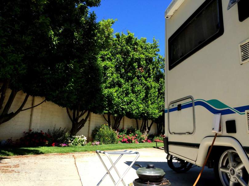 Und dann, SCHNITT, zur Erinnerung, unser Frühstück direkt vor der Parade liegt ja schon hinter uns, wollten wir heute Nachmittag mit ungeteilter Neugierde bei unserem ersten Rodeo sein, und unser „Piece of Cake“, so nannte kürzlich eine Frau unsere „kleine, (eigentlich) bewegliche Wohnung“, sollte voll normal, fix und fertig fahrbereit im RV Park stehen. Und wir ganz bequem zu Fuß. Das Rodeogelände ist nur 1 Meile von dort entfernt.