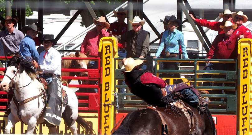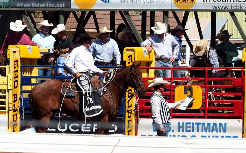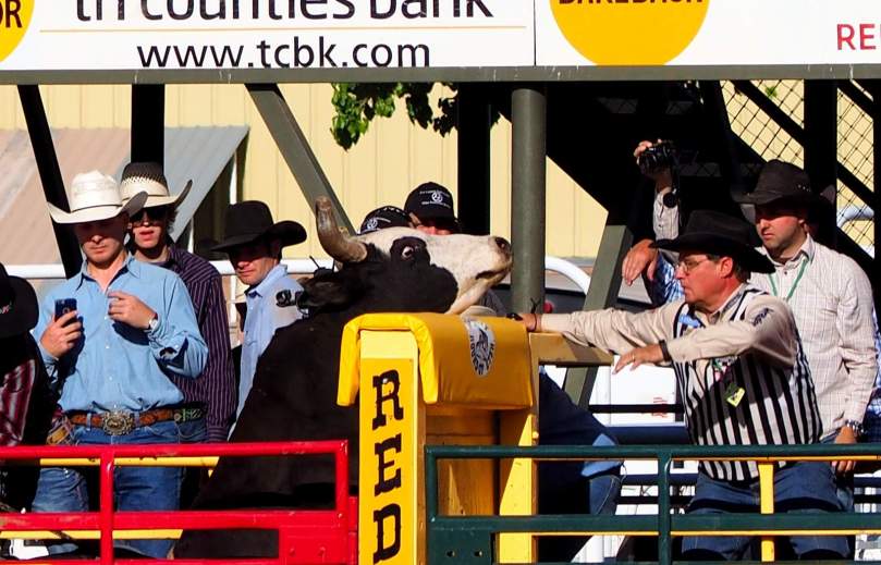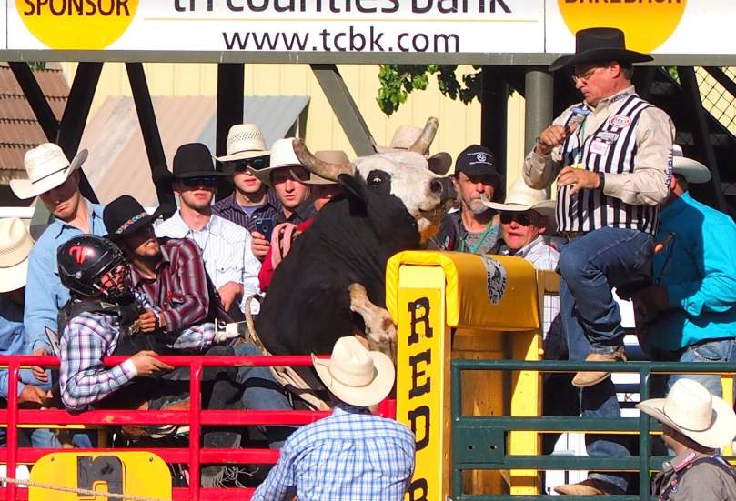 Zu Vollkommenenheit dieser Szene gehört es, dass zwei berittene Cowboys die Aufgabe übernehmen, der eine, das Pferd nach Abwurf des Reiters oder eben spätestens nach 8 Sekunden den Gurt abzunehmen, und der andere gegebenenfalls den Reiter aus der Gefahrenzone des austretenden Pferdes zu sich hinüber zu retten.